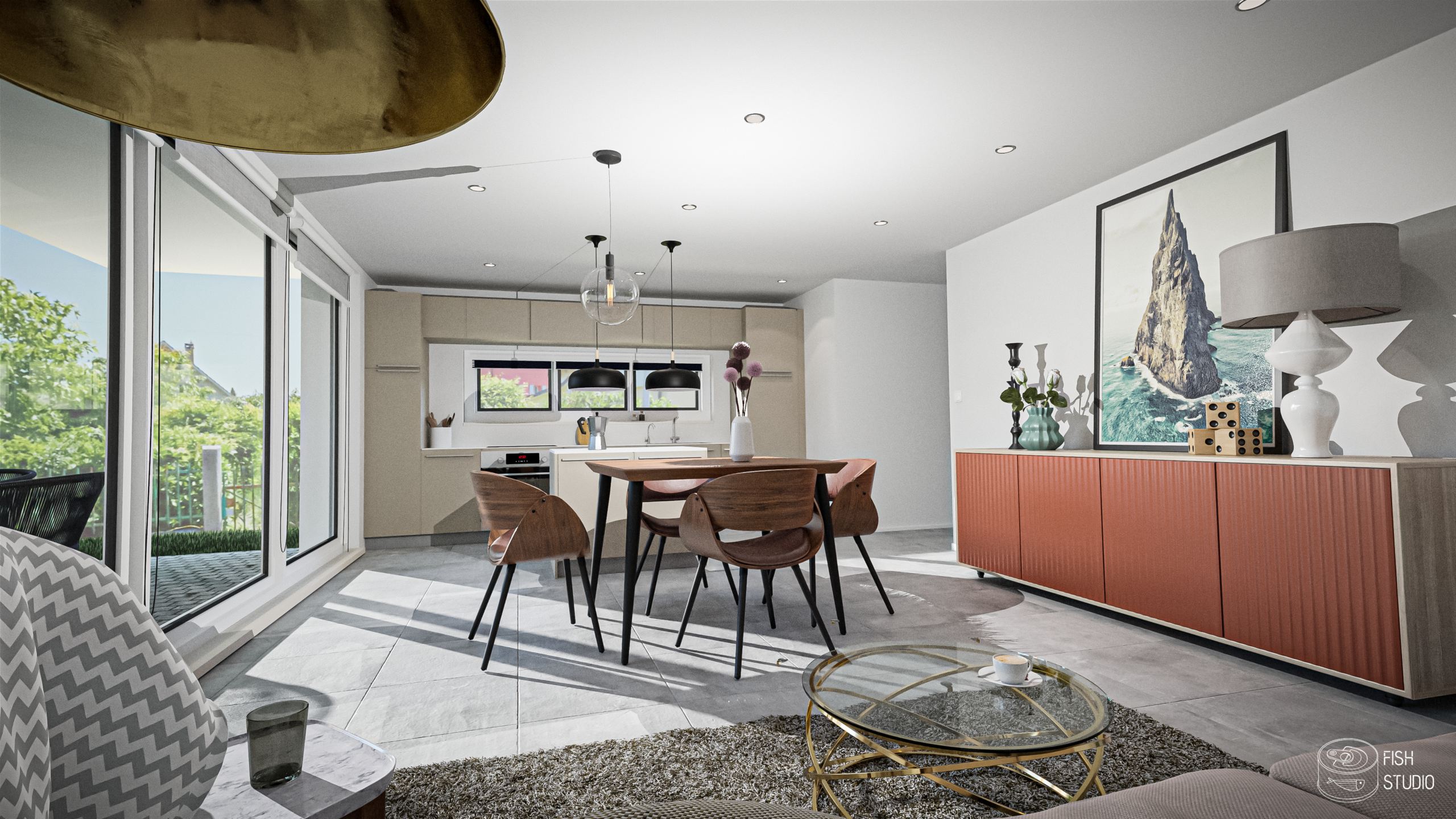 Nous respectons l'ensemble de votre cahier des charges, qu'ils s'agisse de meuble, de sols, de cuisines, de toitures, nous générons nos images pour que vos projets soient le plus réalistes possibles et que vos ventes de projets neufs se passe le plus rapidement possible.